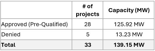 Of the pre-qualified projects, one (1) requested incentives through ADI, and twenty-seven (27) requested CSI-grid supply.